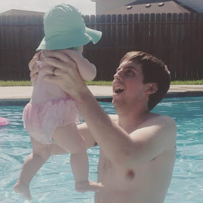 But we've had a great ninth month. We took V to her first baseball game and she and Bobby wore their matching hats (it's how I told him I was pregnant). We took our first swim as a family, and Violet loved playing in the giant bathtub. We watched daddy play volleyball with friends and hung out with Miss Glenda and baby Abby. My little family gave me the loveliest Mother's Day I could ever have asked for. We drove down to Gainesville for Aunt Elizabeth and Uncle Alex's beautiful wedding. And we finished out month nine by putting the "fun" in funeral as we celebrated my grandfather's life.